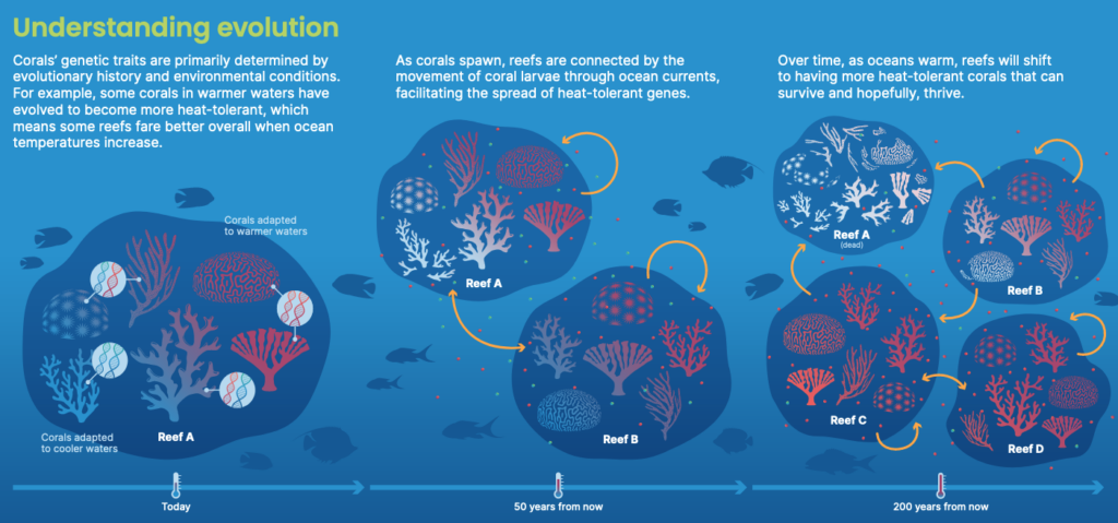 The study advocates for a conservation approach that protects coral reefs at local, regional and global scales, in a way that allows heat tolerance to spread.