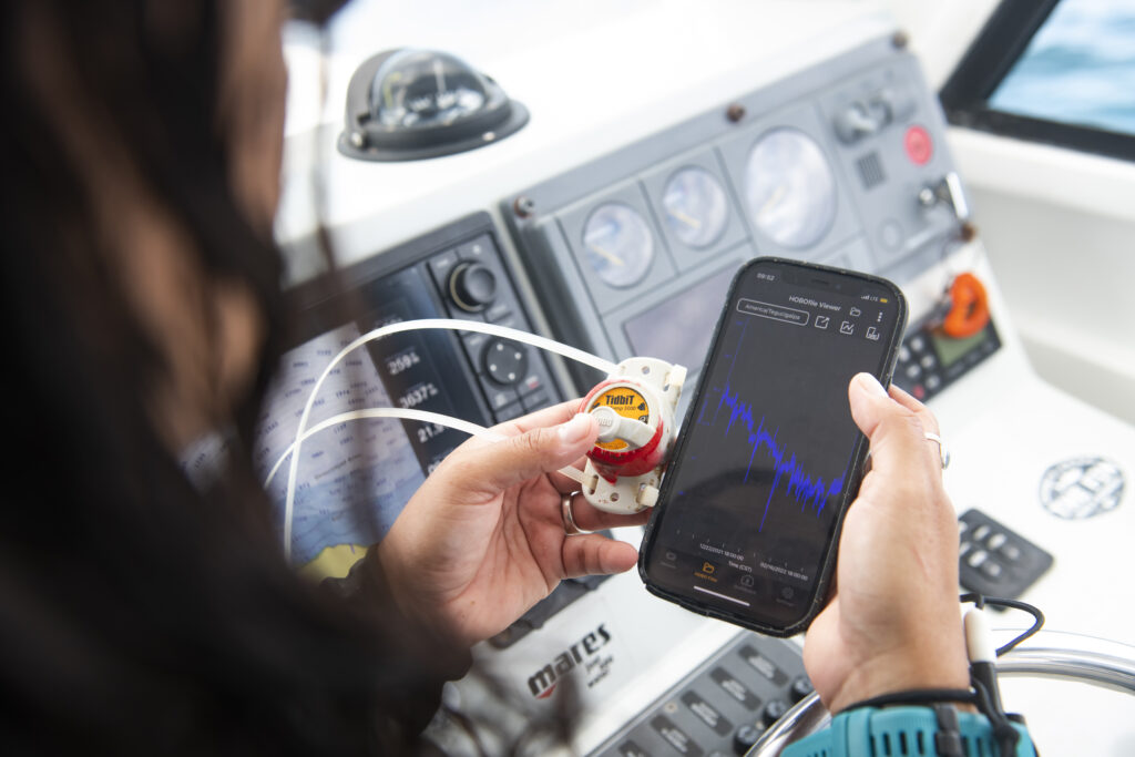 These ONSET TidBits, as they’re known, measure water temperatures every minute and store the data internally. Every four to five months, a diver heads underwater to download the data provided by the temperature loggers.