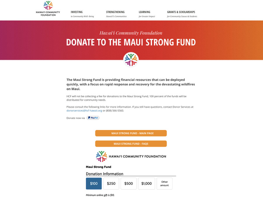 We are committed to following the lead of the Lahaina community once we are able to turn towards protecting and restoring the affected ecosystems after this tragedy. Until then, please consider giving your attention to Hawai‘i Community Foundation’s Maui Strong Fund, the American Red Cross of Hawaii, and the Maui Food Bank.
