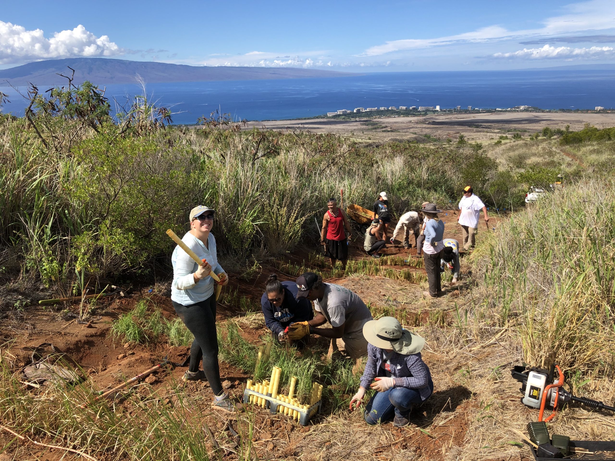 Every month CORAL hosts a Watershed Restoration Day, where a team of volunteers plants native seedlings across abandoned dirt roads. So far, over 200 volunteers have planted approximately 8,000 plants, which are effectively reducing sediment pollution across West Maui.