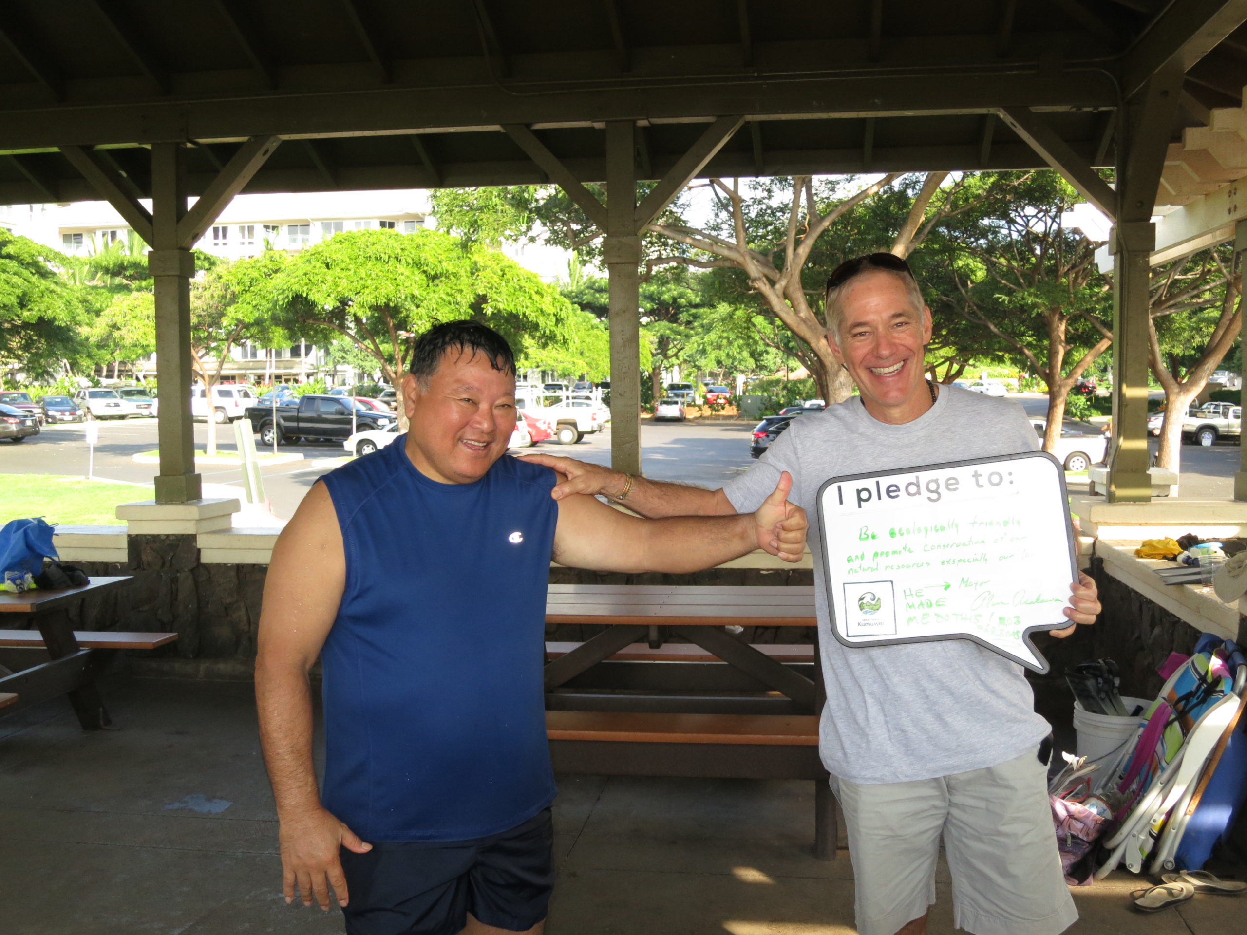 After the reef tour, we convened back at the pavilion to enjoy some refreshments, at which time the mayor and Rob took the West Maui Kumuwai Pledge to share their commitment to take action to reduce land-based pollution on an individual basis; we posted their pledges online immediately.